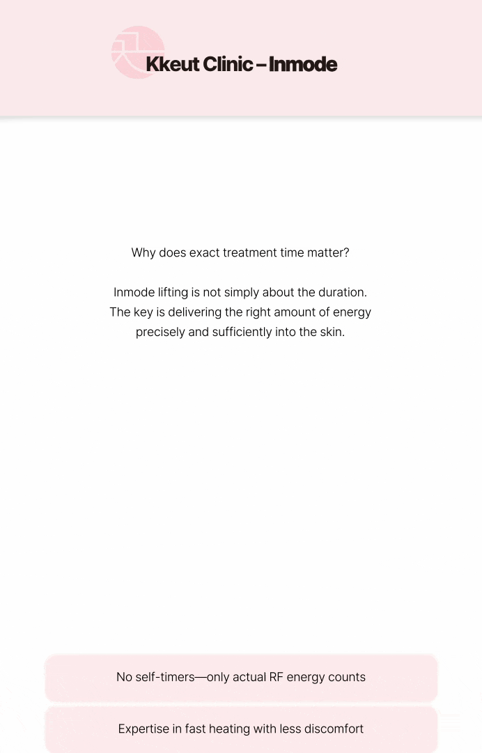 Kkeut韓医院のリフティングは、顔の左右非対称性に重点を置いています。 ✔ [左右非対称性の改善] 同じ施術/同じエネルギー値... Kkeut韓医院は、顔の左右のバランスを考慮し、個人の顔の左右非対称性を繊細に補正するデザインリフティングです。 ✔ [精密なオーダーメイドのエネルギー調整] 同じ強度のエネルギーを無条件に照射するわけではありません。Kkeut韓医院では、お一人お一人の肌の厚さ、筋肉の状態を分析し、部位ごとに最適なエネルギーを調整します。より洗練された施術が可能となり、自然さと持続力を最大限に引き出します。 * 消費税別途