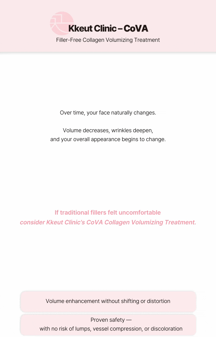 填充剂是将凝胶状物质注入皮肤下方以填充体积,而COVA则通过促进皮肤再生和胶原蛋白生成来自然地填充体积。随着时间的推移,感觉皮肤会自行丰盈!