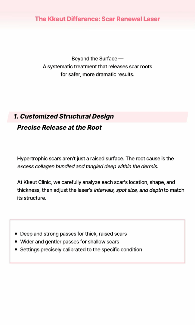 新生肌肤激光是KKEUT韩医院蕴含诊疗哲学、针对每一个疤痕进行定制的精细疤痕治疗。